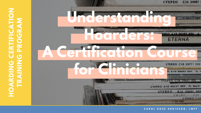 This course will give you practical information and skills to help you support hoarders in your therapy practice.Hoarding is the obsessive collection of objects that seem useless to almost everyone else. It includes the inability to get rid of any of their objects and a resulting state of distress or peril. Someone who hoards may exhibit inability to throw away possessions and severe anxiety when attempting to discard items. Hoarding is a disorder diagnosable by a therapist. 2-5% of the population have this problem. There are 5 levels of hoarding- including level 5 that can consist of blocked rooms, pathways, animal, human waste.